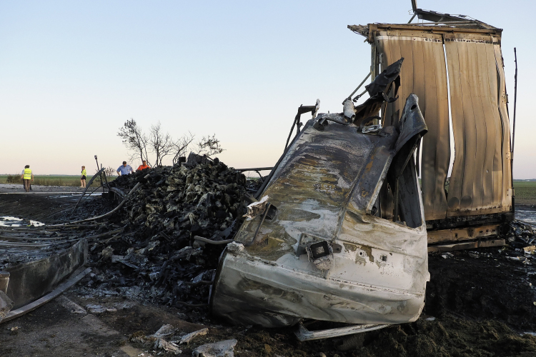 Összeütközött két kamion és egy traktor az 53-as főúton Solt közelében hétfő este, a balesetben hárman meghaltak - közölte a Bács-Kiskun Megyei Rendőr-főkapitányság a police.hu oldalon.