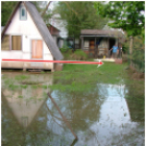 A rövid idő alatt leesett eső a mezőgazdasági területről félelmetes mennnyiségben és erővel a tanyák mögötti úton át zúdult le, a volt kisvasúti töltésnél lévő átfolyók ilyen mennyiségű vizet nem tudtak átengedni, a terület mélyen fekvő részén lévő horgászeszköztárolókat öntötte el az ár.