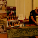A több hazai és nemzetközi, világ-verseny díjjal elismert tehetség lenyűgöző bravúrral hajtogatta az olvadt és illatos-színes karamell anyagból való díszeket. Miközben tucatnyi szempár villogott az alkalmi múzeumi műhely mellett kihelyezett bemutató színes tálcákra, melynek minta-darabjai gyorsan vevőkre is találtak.