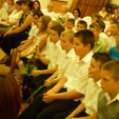 A 4. osztály és osztályfőnökük Patakiné Böjtös Erzsébet vidám hangulatot varázsolt a tornacsarnokba. A versekkel a nyarat idézték meg, a friss zene és tánc azt az örömet fejezte ki: szeptemberig nem kell suliba járni!
